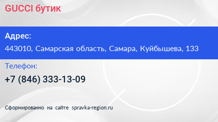 GUCCI, бутик по адресу 443010, Самарская область, Самара, Куйбышева, 133 в дальнейшем Организация, размещена в следующих категориях: