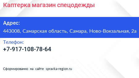 Каптерка, магазин спецодежды по адресу 443008, Самарская область, Самара, Ново-Вокзальная, 2а в дальнейшем Организация, размещена в следующих категориях: