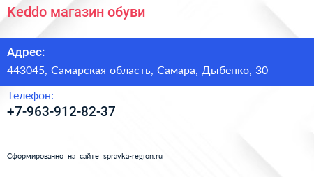 Keddo, магазин обуви по адресу 443045, Самарская область, Самара, Дыбенко, 30 в дальнейшем Организация, размещена в следующих категориях: