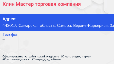 Клин Мастер, торговая компания по адресу 443017, Самарская область, Самара, Верхне-Карьерная, 3а в дальнейшем Организация, размещена в следующих категориях:
