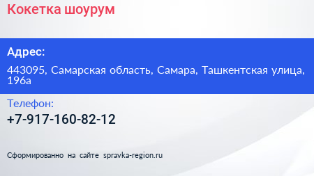 Кокетка, шоурум по адресу 443095, Самарская область, Самара, Ташкентская улица, 196а в дальнейшем Организация, размещена в следующих категориях:
