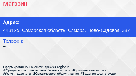 Магазин по адресу 443125, Самарская область, Самара, Ново-Садовая, 387 в дальнейшем Организация, размещена в следующих категориях: