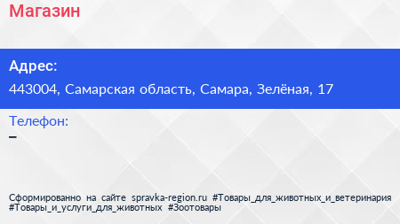 Магазин по адресу 443004, Самарская область, Самара, Зелёная, 17 в дальнейшем Организация, размещена в следующих категориях: