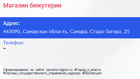 Магазин бижутерии по адресу 443090, Самарская область, Самара, Стара-Загора, 25 в дальнейшем Организация, размещена в следующих категориях: