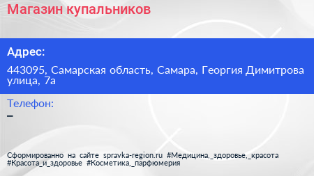 Магазин купальников по адресу 443095, Самарская область, Самара, Георгия Димитрова улица, 7а в дальнейшем Организация, размещена в следующих категориях: