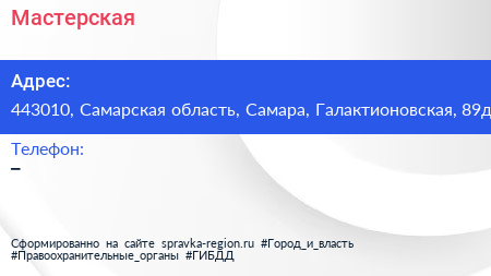 Мастерская по адресу 443010, Самарская область, Самара, Галактионовская, 89д в дальнейшем Организация, размещена в следующих категориях: