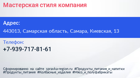 Мастерская стиля, компания по адресу 443013, Самарская область, Самара, Киевская, 13 в дальнейшем Организация, размещена в следующих категориях: