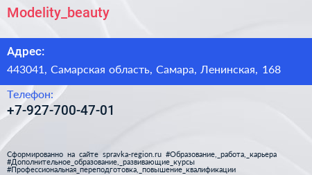 Modelity_beauty по адресу 443041, Самарская область, Самара, Ленинская, 168 в дальнейшем Организация, размещена в следующих категориях: