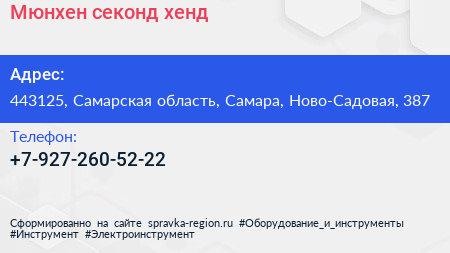 Мюнхен, секонд-хенд по адресу 443125, Самарская область, Самара, Ново-Садовая, 387 в дальнейшем Организация, размещена в следующих категориях: