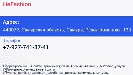 НеFashion по адресу 443079, Самарская область, Самара, Революционная, 133 в дальнейшем Организация, размещена в следующих категориях: