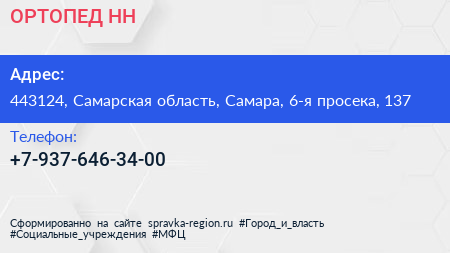 ОРТОПЕД-НН по адресу 443124, Самарская область, Самара, 6-я просека, 137 в дальнейшем Организация, размещена в следующих категориях: