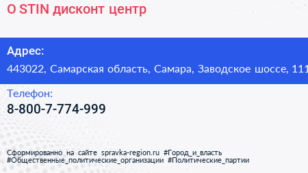 O`STIN, дисконт-центр по адресу 443022, Самарская область, Самара, Заводское шоссе, 111 в дальнейшем Организация, размещена в следующих категориях: