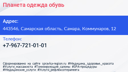 Планета одежда обувь по адресу 443546, Самарская область, Самара, Коммунаров, 12 в дальнейшем Организация, размещена в следующих категориях: