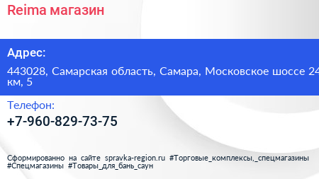 Reima, магазин по адресу 443028, Самарская область, Самара, Московское шоссе 24 км, 5 в дальнейшем Организация, размещена в следующих категориях: