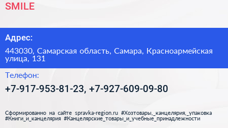 SMILE по адресу 443030, Самарская область, Самара, Красноармейская улица, 131 в дальнейшем Организация, размещена в следующих категориях: