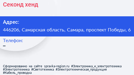 Секонд-хенд по адресу 446206, Самарская область, Самара, проспект Победы, 6 в дальнейшем Организация, размещена в следующих категориях: