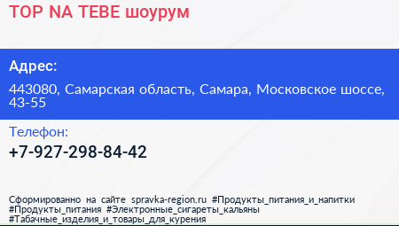 TOP NA TEBE, шоурум по адресу 443080, Самарская область, Самара, Московское шоссе, 43-55 в дальнейшем Организация, размещена в следующих категориях: