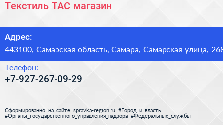 Текстиль TAC, магазин по адресу 443100, Самарская область, Самара, Самарская улица, 268 в дальнейшем Организация, размещена в следующих категориях: