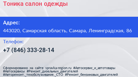 Тоника, салон одежды по адресу 443020, Самарская область, Самара, Ленинградская, 86 в дальнейшем Организация, размещена в следующих категориях: