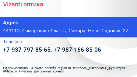 Vizanti, оптика по адресу 443110, Самарская область, Самара, Ново-Садовая, 27 в дальнейшем Организация, размещена в следующих категориях: