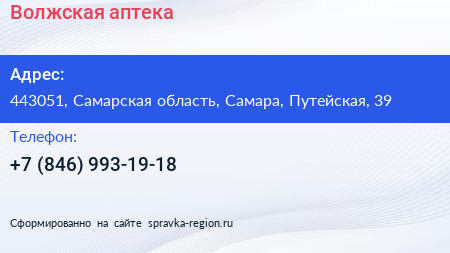 Волжская аптека по адресу 443051, Самарская область, Самара, Путейская, 39 в дальнейшем Организация, размещена в следующих категориях: