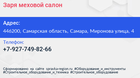 Заря, меховой салон по адресу 446200, Самарская область, Самара, Миронова улица, 4 в дальнейшем Организация, размещена в следующих категориях: