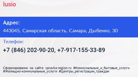 lusio по адресу 443045, Самарская область, Самара, Дыбенко, 30 в дальнейшем Организация, размещена в следующих категориях: