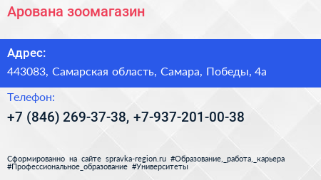 Арована, зоомагазин по адресу 443083, Самарская область, Самара, Победы, 4а в дальнейшем Организация, размещена в следующих категориях: