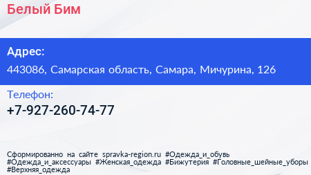 Белый Бим по адресу 443086, Самарская область, Самара, Мичурина, 126 в дальнейшем Организация, размещена в следующих категориях: