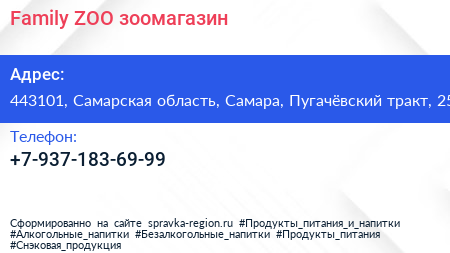 Family ZOO, зоомагазин по адресу 443101, Самарская область, Самара, Пугачёвский тракт, 25 в дальнейшем Организация, размещена в следующих категориях: