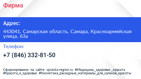 Фирма по адресу 443041, Самарская область, Самара, Красноармейская улица, 63а в дальнейшем Организация, размещена в следующих категориях: