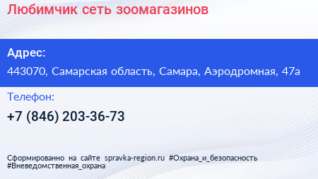 Любимчик, сеть зоомагазинов по адресу 443070, Самарская область, Самара, Аэродромная, 47а в дальнейшем Организация, размещена в следующих категориях: