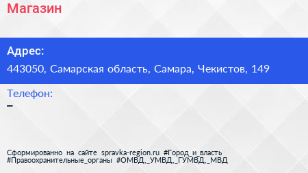 Магазин по адресу 443050, Самарская область, Самара, Чекистов, 149 в дальнейшем Организация, размещена в следующих категориях: