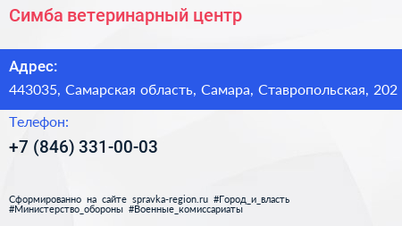 Симба, ветеринарный центр по адресу 443035, Самарская область, Самара, Ставропольская, 202 в дальнейшем Организация, размещена в следующих категориях: