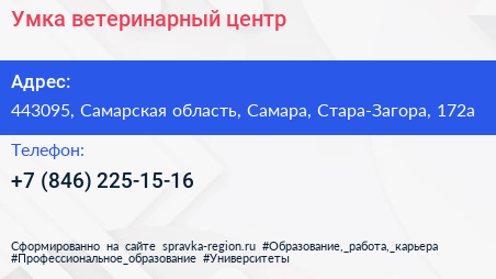 Умка, ветеринарный центр по адресу 443095, Самарская область, Самара, Стара-Загора, 172а в дальнейшем Организация, размещена в следующих категориях: