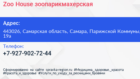 Zoo House, зоопарикмахерская по адресу 443026, Самарская область, Самара, Парижской Коммуны, 19а в дальнейшем Организация, размещена в следующих категориях:
