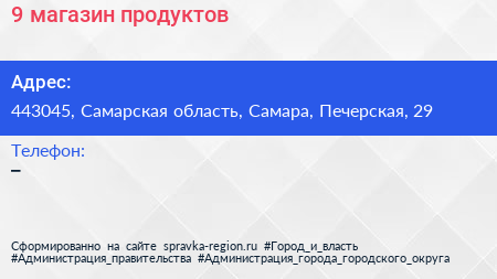 9%, магазин продуктов по адресу 443045, Самарская область, Самара, Печерская, 29 в дальнейшем Организация, размещена в следующих категориях: