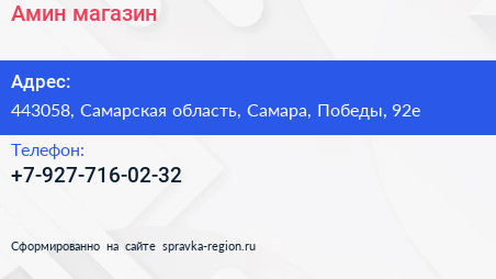 Амин, магазин по адресу 443058, Самарская область, Самара, Победы, 92е в дальнейшем Организация, размещена в следующих категориях: