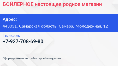 БОЙЛЕРНОЕ настоящее & родное, магазин по адресу 443031, Самарская область, Самара, Молодёжная, 12 в дальнейшем Организация, размещена в следующих категориях: