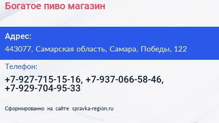 Богатое пиво, магазин по адресу 443077, Самарская область, Самара, Победы, 122 в дальнейшем Организация, размещена в следующих категориях: