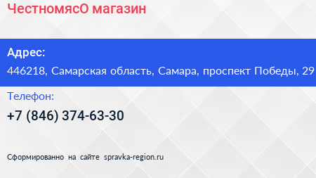 ЧестномясО, магазин по адресу 446218, Самарская область, Самара, проспект Победы, 29 в дальнейшем Организация, размещена в следующих категориях: