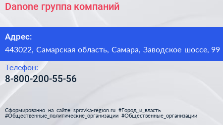 Danone, группа компаний по адресу 443022, Самарская область, Самара, Заводское шоссе, 99 в дальнейшем Организация, размещена в следующих категориях: