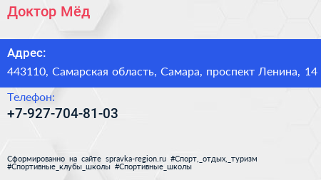 Доктор Мёд по адресу 443110, Самарская область, Самара, проспект Ленина, 14 в дальнейшем Организация, размещена в следующих категориях:
