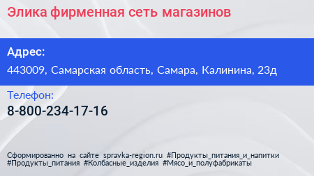 Элика, фирменная сеть магазинов по адресу 443009, Самарская область, Самара, Калинина, 23д в дальнейшем Организация, размещена в следующих категориях:
