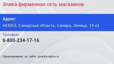 Элика, фирменная сеть магазинов по адресу 443052, Самарская область, Самара, Земеца, 19 к1 в дальнейшем Организация, размещена в следующих категориях: