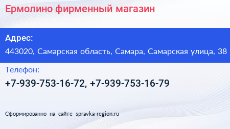 Ермолино, фирменный магазин по адресу 443020, Самарская область, Самара, Самарская улица, 38 в дальнейшем Организация, размещена в следующих категориях: