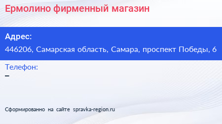 Ермолино, фирменный магазин по адресу 446206, Самарская область, Самара, проспект Победы, 6 в дальнейшем Организация, размещена в следующих категориях: