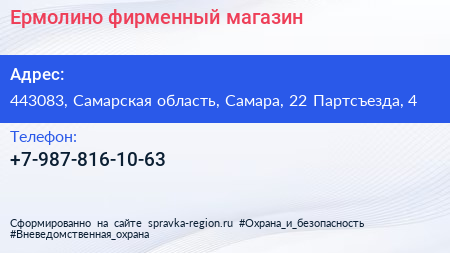 Ермолино, фирменный магазин по адресу 443083, Самарская область, Самара, 22 Партсъезда, 4 в дальнейшем Организация, размещена в следующих категориях: