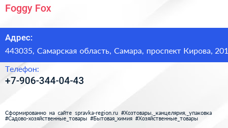 Foggy Fox по адресу 443035, Самарская область, Самара, проспект Кирова, 201 в дальнейшем Организация, размещена в следующих категориях: