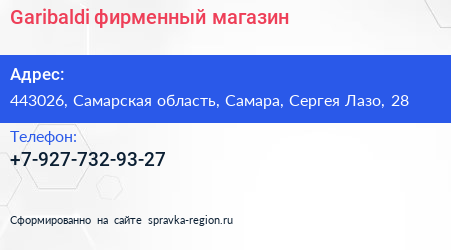 Garibaldi, фирменный магазин по адресу 443026, Самарская область, Самара, Сергея Лазо, 28 в дальнейшем Организация, размещена в следующих категориях: